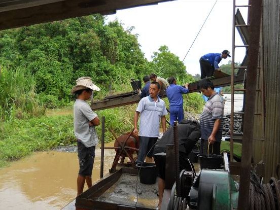 河沙中沙金富集一般是用淘金船或旱地淘金機(jī),沙金富集系統(tǒng)目前常用的有固定淘金氈溜槽、鼓動(dòng)式溜槽、擋邊皮帶式自動(dòng)洗選機(jī)、淘金離心機(jī)等。