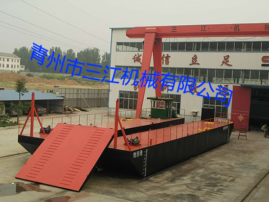 1.本設(shè)備為分體組裝式鋼質(zhì)甲板駁,拆分后可用平板貨車公路運(yùn)輸至目的地,或者公路運(yùn)輸至港口裝入散貨船長途海運(yùn)至海外工作地,經(jīng)過簡單的組裝即可投入運(yùn)輸作業(yè)。
