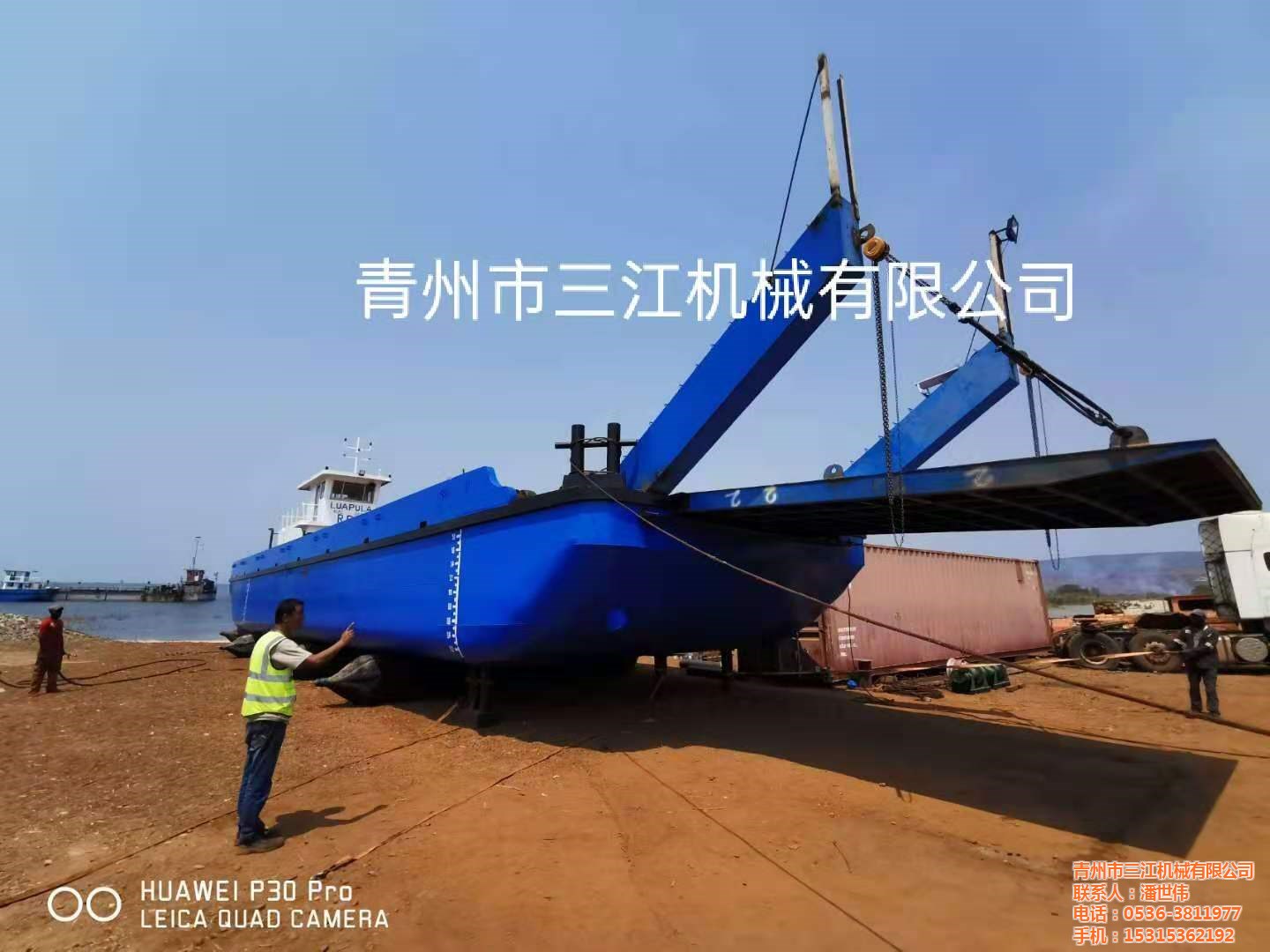非洲剛果金客戶定做的兩臺200噸礦石運(yùn)輸甲板駁一次試車成功,交付使用。