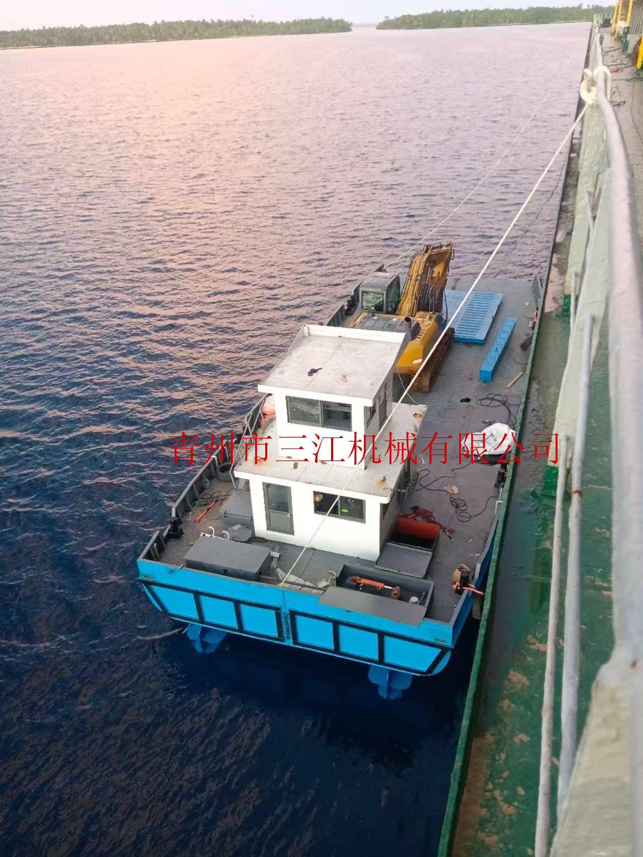 2023年,中鐵集團承接了密克羅尼西亞一處原始島嶼的綜合開發(fā)工程。該島風景秀美,椰林成蔭、白沙碧海,但基礎(chǔ)設(shè)施幾乎為零——無港口、無淡水、無電力,甚至連基本的物資卸載平臺都不存在。項目首期建設(shè)需運輸約3萬噸建材與設(shè)備上島,然而由于島嶼近岸比降為8:1,大型運輸船只無法靠岸,只能在距離島岸2-3公里的深水區(qū)停泊。傳統(tǒng)方式如小型一體接駁船,穩(wěn)定性差、裝卸效率低,無法滿足施工要求。