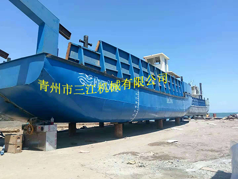 鋼質(zhì)帶跳板自航甲板駁船,可以滿足近海水深不超過2米的淺水水域貨物接駁要求,或者內(nèi)河與近海的聯(lián)運。
